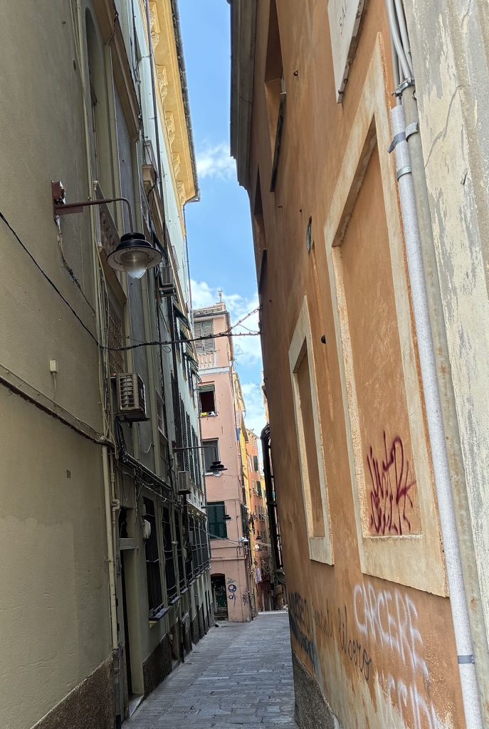 Die engen Gassen der Altstadt laden zum Erkunden und Spazieren ein, hier könnte man tagelang herumgehen. Das ist manchmal abenteuerlich (etwa, als wir einen Häuserblock erreichten, rund um den körperliche Nähe käuflich angeboten wurde), manchmal schweißtreibend (es geht ständig rauf und runter, in Ligurien gibt es generell wenig Platz zwischen Meer und Berg), oft verwirrend (hier waren wir doch schon, oder?) – aber immer faszinierend.