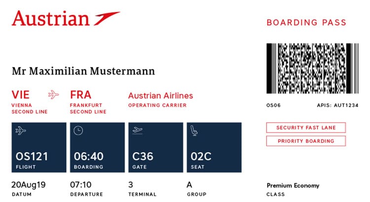 Die Marke „AUA“ wurde im Vorjahr überarbeitet, das hat sich bereits in einem veränderten Logo, der Bemalung der Flugzeuge und den Zeichen auf den Flughäfen niedergeschlagen. Nun wurde auch der Boarding Pass (also auf gut deutsch die Bordkarte) angepasst. Konkret sehen sowohl die gedruckten Bordkarten also auch die mobilen Bordkarten am Handy nun anders aus. Die Wiener Agentur brainds sollte dabei vor allem Übersichtlichkeit und bessere Lesbarkeit achten – und das scheint auch gelungen zu sein. Vor allem ist wichtig, dass die wichtigsten Daten wie Abflug-Gate, Sitznummer und vor allem Boardingzeit nun größer dargestellt werden.