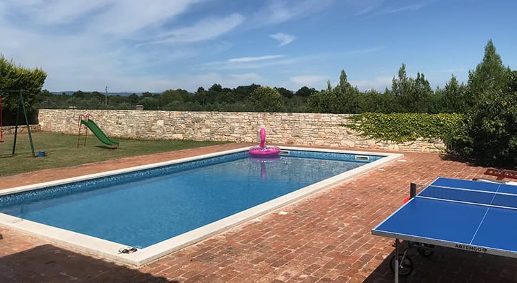 Wir hatten uns für ein Haus mit Pool und großem Garten am Rande der kleinen Ortschaft Valtura in der Nähe von Medulin und Pula entschieden. Das bietet ausreichend Platz und der Garten ist auch für Familien geeignet. Mit dem Auto ist man in wenigen Minuten am Meer; für die Schotterstraßen zu abgelegenen Buchten empfiehlt sich aber ein fahrbarer Untersatz, der nicht zu heikel auf Staub und Steine reagiert. Boote kann man in Medulin ausborgen, die Preise sind derzeit leicht nach unten verhandelbar.